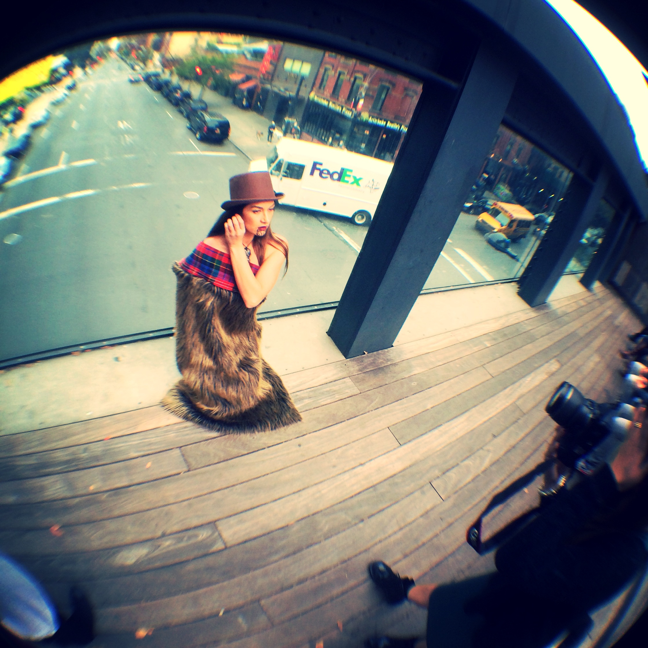 Tuesday here in the United States of America was Veteran’s day. New York city has a huge parade that started at 11.30am and went all the way till 3.30pm going up 5th Ave from 23rd St till 59th St. That is a huge and busy chunk of New York and after 9/11 the intensity and purpose of this parade means that much more to New Yorkers. The traffic was crazy, but luckily for us we were rocking the waewae express. But we definitely felt sorry for the detoured traffic, they were backed up all sorts of ways. We headed on down to see if we could catch some sort of military contingent to snap some photos with. We knew with the relevance of our name being Soldiers Rd we really wanted to grab some shots with some people down there. Equipped with our Soldiers Rd Maori makeover bag, we saw some Army trucks and smack bam on the sidewalk, got changed. I was able to jump on one of their army trucks and they were pretty obliged to let us just do our thing. We also were able to search out a few veterans. One was called Nick, he was a returned servicemen in his late 60’s I’d say and he had no trouble posing staunch with me. I was dressed up in our full on vintage, straight colonial days kakahu. Hair swirled up and feathers adorned. A few people thought I was part of the parade I think, because I posed for a few photos with people passing by. One lady even followed me to ask me what Native American tribe I was from. When I explained that I was actually from New Zealand, we engaged in a conversation about moko and the similarities between Native American culture and ours, and she couldn’t believe that with the way I was dressed and with the feathers I was wearing, that I wasn’t somehow a part of the Native American veterans contingent in the parade. She snapped some pictures with me regardless and was grateful to have met her first New Zealander. We also got a shot with a current U.S soldier dressed in his army gear bearing the flag for Black Veterans for Social Justice. He was awesome and we asked for a Soldiers Rd shot with him and his son. We did notice that the parade was divided into the relevant groups depending on their race. We also saw loads of high school marching bands and caught up with a former Navy officer named Carl (sounded like Cole in his New York accent haha) that posed for a photo with me and also managed to get a kiss on the cheek from both of us, the old charmer. Lol. After getting changed, I was randomly asked by some people nearby for an interview. Turns out they were from SONY and were interviewing people for the newly released film called “FURY” starring none other than Brad Pitt. They had me at Brad. LOL.