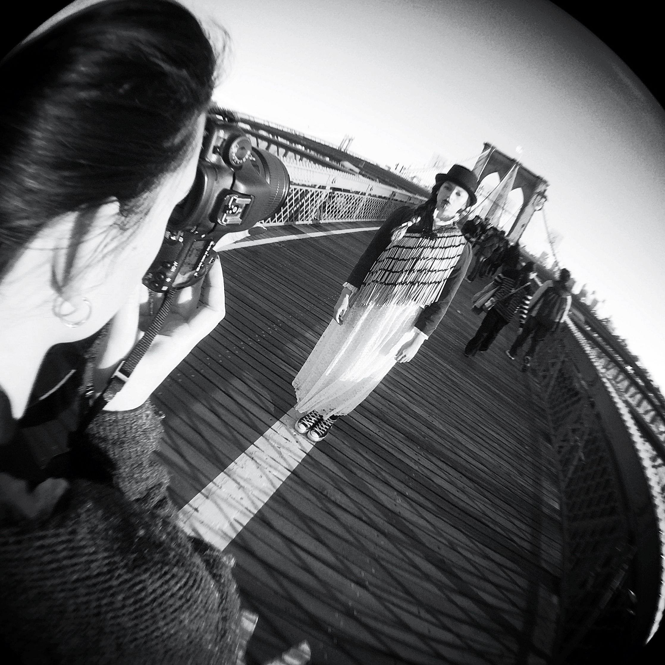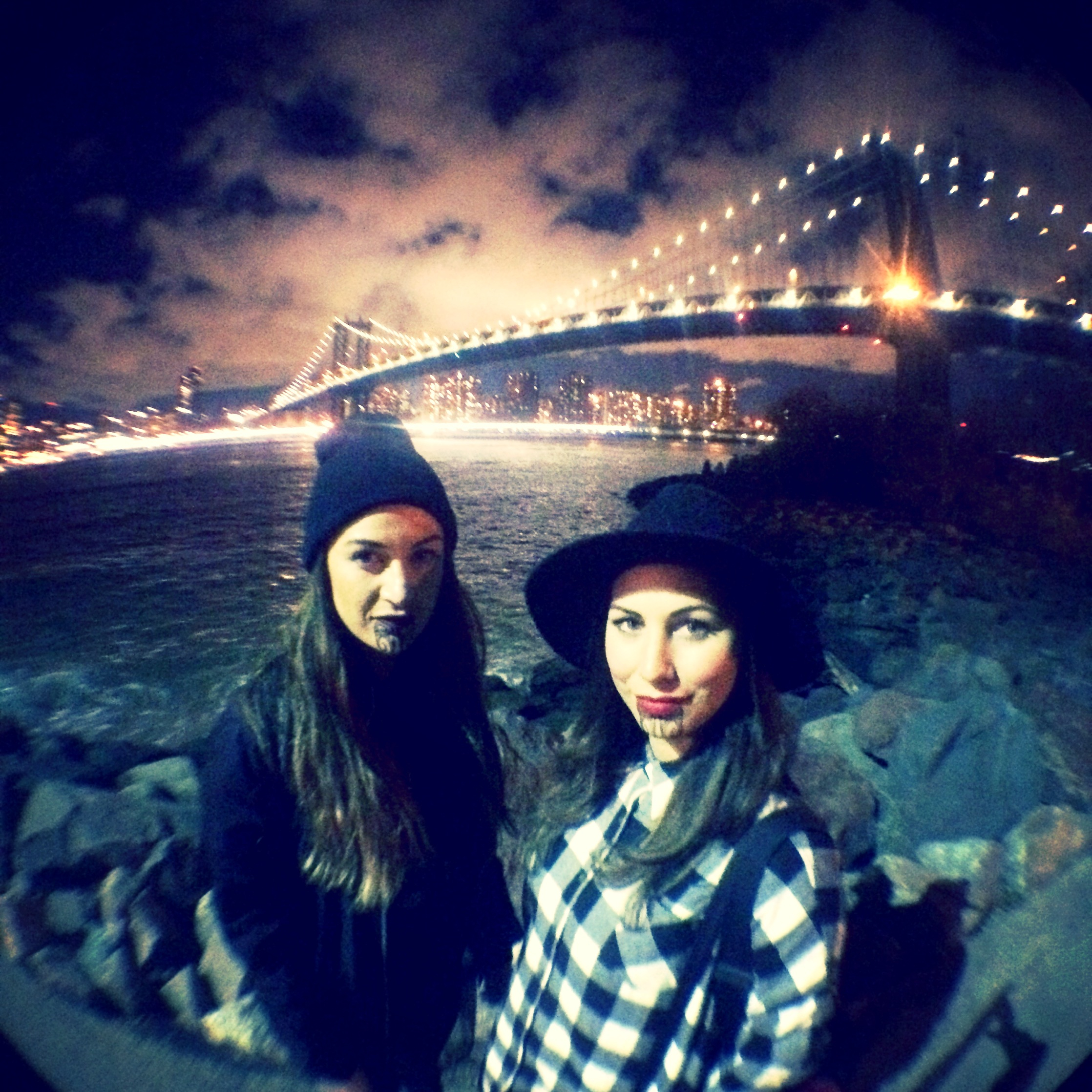 On Monday, we decided with the sun shining, we would head to Brooklyn Bridge. Off on our old mate the subway we headed, and after sitting down for a feed, we went to walk up and across the Brooklyn Bridge. Let’s just get one thing straight. If you’re wanting to dilly dally your way up, stopping here and there or where ever you please, Don’t! There is a walking lane on the right, the opposite side to us at home, which is actually crucial, I’ve learnt that the hard way in the middle of my left-handed walk day dreams. Secondly, there is a bike lane on the left. Stay clear of the bikes, they are no joke! These cyclists aren’t in cycling clothes or nothing, they are in regular clothes. Most of them dressed cooler than your average. But ALL of them are equipped with a bell, a voice box and the funniest I found, a WHISTLE. They will use all of the above if you are in the way, and they are not ashamed to scream out at you. There are also heaps and heaps of people on this bridge too. We were amazed at the amount of people/tourists and just everyday New Yorkers that frequent this bridge. Anyway, we found a good spot that we were both happy with, and out came the Maori makeover bag. I got dressed on the bridge. Everyone watched. Some people took photos, others just watched on, wondering if there was going to be something happening. We got some awesome shots on the bridge. While we were doing these, I heard a “Tena Koe” from behind us! Turn around, and sure enough, we saw a few Maori people that were as surprised to see us in piupiu on the Brooklyn Bridge as we were to hear “Tena Koe”. It’s mandatory when you see a kiwi to stop and do the who, what, where, when and why. It’s not like you HAVE too, but you just want to. You want to know what they’re about and they want to know what you’re about. That’s the beauty of culture I suppose. There’s a mutual interest in one another. Turns out, they lived and worked in Toronto and were only visiting, but how cool it was to stop and chat to them where we were.