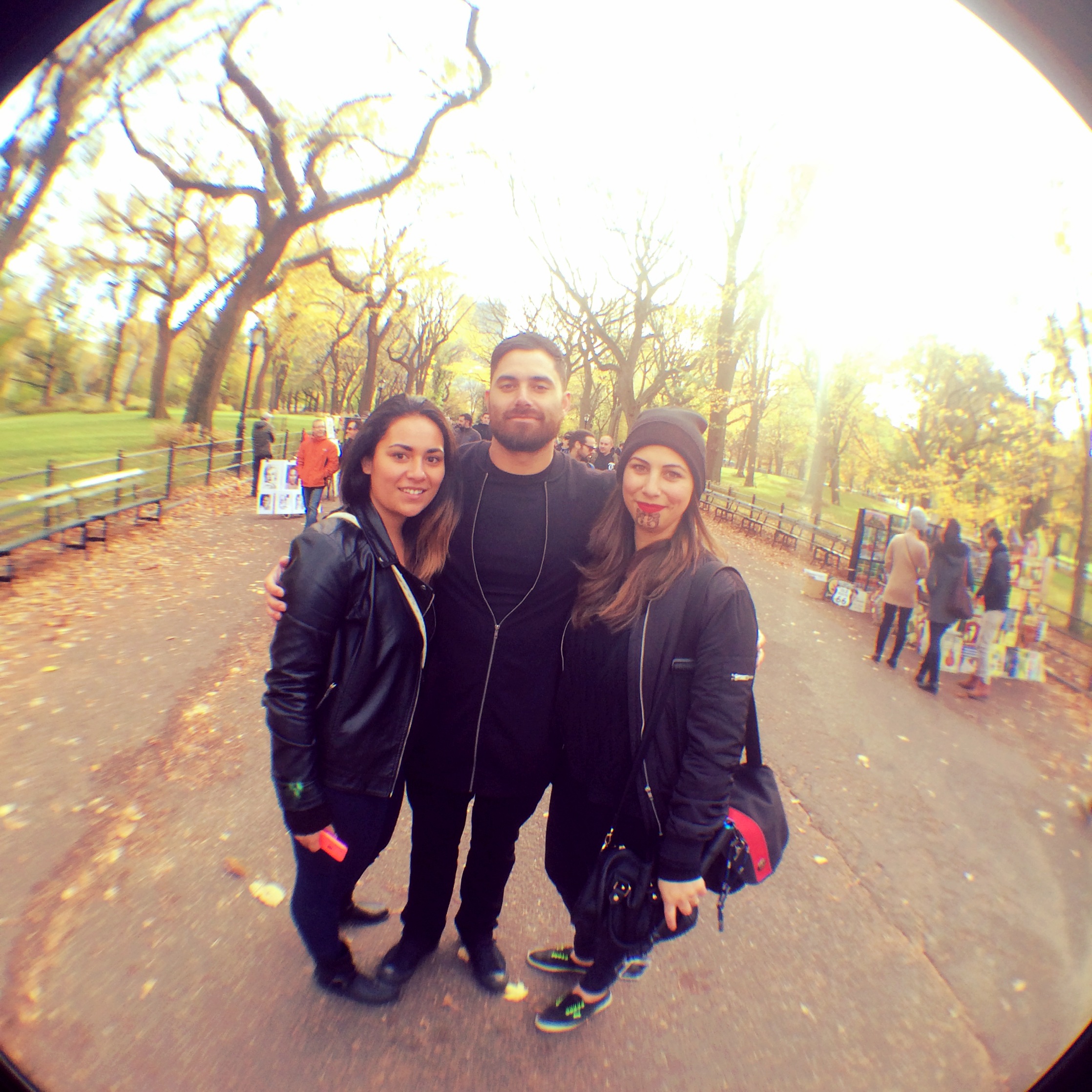 After basking in the glory that is victory, we headed off to Central Park. Lucky for us, Vienna and Eden’s cousin Alexis had come to meet us at “The Australian”. She was able to navigate us easily to places in Central Park and while we were there we did some shots with the wonderful scenery as a backdrop. Central Park is HUGE! In some places you nearly forget that you’re in a huge city. Then you look around and see that you’re sharing that huge green space with a trillion other people who are all taking photos, walking dogs, running (lots of people running) or biking or pushing prams. Then you realise you are after all, in a huge city. They have people there hustling to see if you want to be transported around on rickshaws (pretty much a bike with a carriage at the back). They also have the option of a horse and carriage. So for you lazy fellas, you’re in luck! You will never be more grateful for the wide open green spaces we are given in Aotearoa until you come to a place like New York. But in saying that. They utilize the space they are given really well. There are people sitting, reading, chatting or just hanging out everywhere that there is a place to do so. Atleast they aren’t taking it for granted. If you’re going to Central Park, head to “The Rock”. It has an awesome backdrop of lake and trees as well as the New York city skyline. Bit of both worlds in there. There’s also Strawberry Fields which is a memorial for John Lennon right across the road from where he was shot. We were lucky enough to have a busker there singing songs by The Beatles to set the mood. FYI, the buskers there are given a time limit on how long they can sit and entertain. Which is an hour. You have never seen hustle like you have seen hustle in New York. You can pay a guy a dollar to tell a joke and if you don’t laugh he’ll give it back. You name it and people are doing it in Central Park, trying to bag a buck. Vienna and I can’t help but admire the hustle that New Yorkers have. Age, race, gender, it makes no difference. EVERYONE is trying to make a dollar somehow and there is no shame in it. You can’t beat it, but our upbringing, and I guess in some ways our cultural side, can’t help but feel a bit sad for the kuia and koro that are out in the cold, cleaning rubbish or wiping tables. We don’t know how lucky we are!